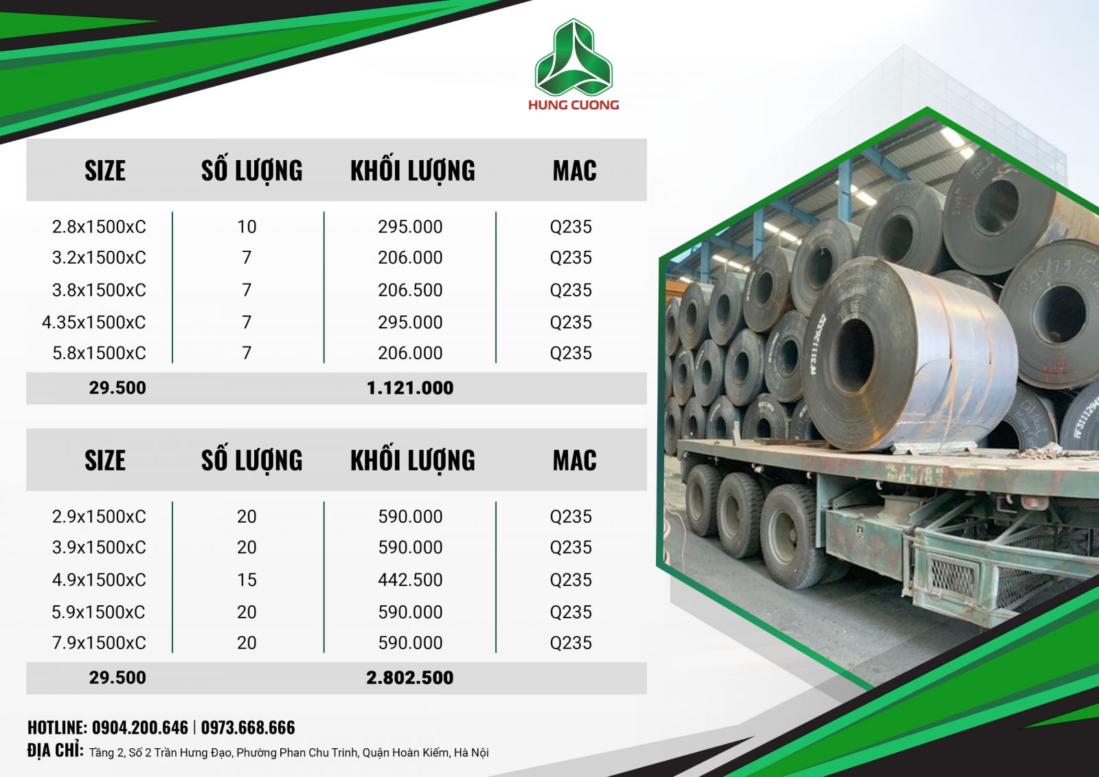 Hùng Cường xin kính gửi Quý đối tác, Quý khách hàng bản cập nhật giá thép các loại tại thời điểm tháng 08/2023.